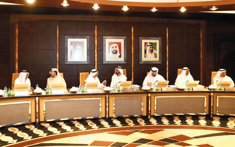 محمد بن راشد يتوسط الصورة خلال اجتماع مجلس الوزراء